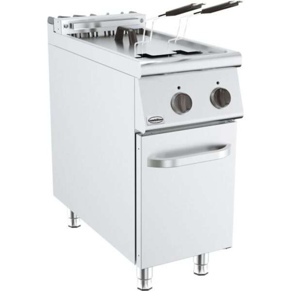 Lernen Sie unseren effizienten und benutzerfreundlichen Tischmodell Pommes Frites Warmer kennen! Dieser hochwertige Frittierwärmer ist ideal zum Warmhalten von Pommes Frites. Die Einheit eignet sich zur Ergänzung Ihrer Kochlinienaufstellung, aber durch ihre kompakte Größe lässt sie sich auch problemlos an anderen Stellen in der Küche platzieren. Dadurch ist sie vielseitig in verschiedenen Küchensituationen einsetzbar, von professionellen Restaurants bis hin zu kleineren Catering-Locations. Dank des robusten Edelstahlgehäuses ist die Einheit langlebig und einfach zu reinigen. Der keramische Infrarot-Oberheizer hält die Pommes Frites konstant auf der richtigen Temperatur, sodass sie länger knusprig und warm bleiben. Die Abmessungen betragen 400x700x300 mm (LxBxH) - Leistung 1 kW - Gewicht 23 kg. Hauptmerkmale: Edelstahlgehäuse: langlebig und widerstandsfähig gegen intensive Nutzung. Einfache Reinigung: der Ölfilter und die abnehmbare Container machen die Reinigung mühelos. Ergonomisches Design: für eine optimale Benutzerfreundlichkeit in jeder Küchenaufstellung entwickelt. Keramischer Infrarot-Oberheizer: hält die Pommes Frites auf der perfekten Temperatur. Verstellbare Füße: für eine stabile und maßgeschneiderte Platzierung. Egal, ob Sie ein professioneller Koch sind oder in einer Catering-Umgebung arbeiten, dieser Pommes Frites Warmer ist eine zuverlässige Wahl, um Ihre Gerichte warm und schmackhaft zu servieren! Bestellen Sie noch heute und vervollständigen Sie Ihre Küche!